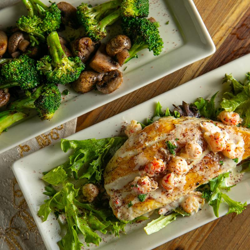 Marinated in olive oil, lemon juice, & capers over a bed of greens served with fresh sauteed vegetables • Suggested Wine: Frei Brothers’ Chardonnay