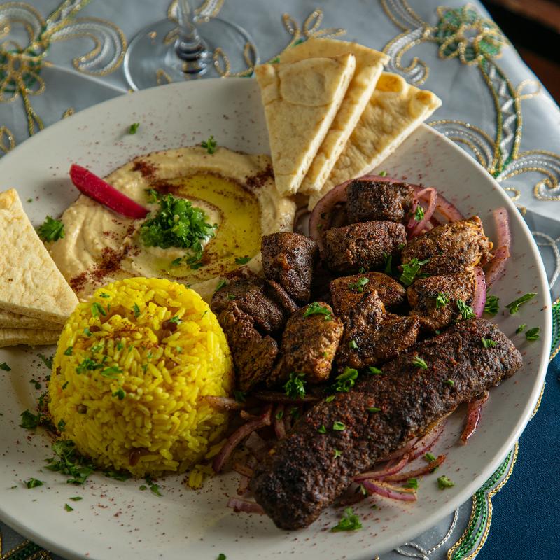 Prime steak tips, chicken & shish